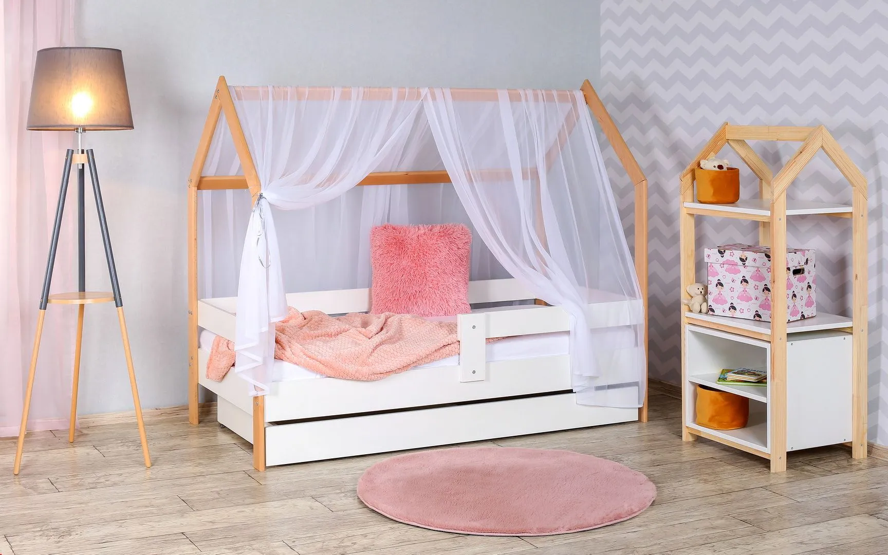 Model Domek je napravljen od najkvalitetnijeg bukovog drveta. Svi elementi kreveta su zaobljeni radi sigurnosti vašeg deteta. Drvo bukve nema karakterističan miris i otporno je na ogrebotine. Svi drveni elementi obojeni su sertifikovanim lakom na bazi vode bez mirisa. Mnogobrojni su razlozi da svojim mališanima priuštite baš ovaj krevetić, koji pored bajkovitog izgleda poseduje i sledeće kvalitete: *Lepota bukovog drveta bez čvorova *Praktična barijera koja će zaštititi dete od pada prilikom spavanja. Barijera je podesiva i po potrebi može biti leva ili desna. Što znači da je krevetić dvostran. * Ivice završene sigurnim, zaobljenim furnirom debljine 2 mm. * Prostrana fioka na točkovima * Udoban dušek U cenu kreveta uključene su lestvice i dušek. Nosivost kreveta je 130 kg. Za kupce na teritoriji Beograda, postoji mogućnost montaže uz doplatu od 3500 din. Krevet proizveden u EU