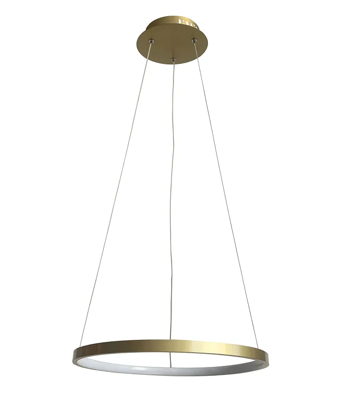 Lune visilica je elegantna LED lampa od 25V u zlatnoj boji. Okrugli oblik od 40 cm uvodi moderan stil u unutrašnjost. Idealna za dnevnu sobu, trpezariju ili spavaću sobu, Lampa Lune pruža svetlo i ravnomerno osvetljenje, kombinujući funkcionalnost sa estetikom. Njegov moderan dizajn i elegantna završna obrada čine ga odličnim izborom za savremeni dizajn enterijera.
